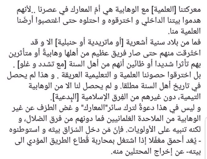 وخلاصة أسبابه أن السلفية التي يسمونها الوهابية هي باختصار أن